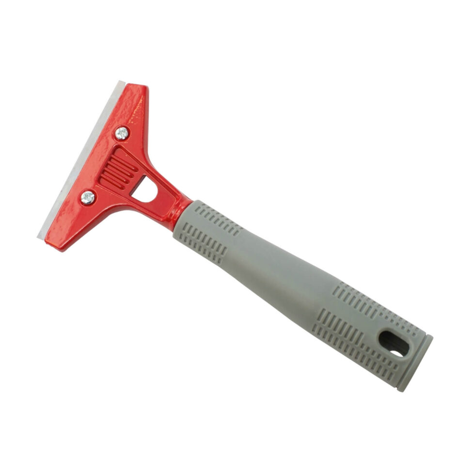 Doeltreffend: met extra groot schrapervlak – Dubbelzijdig mes van 10 cm: met scherpe en stompe zijde. -Praktisch: dankzij de sleuven kan u het mes makkelijk wisselen. – Ergonomische kunststof handgreep. – Veilig: mes kan worden afgeschermd met een beschermkap (meegeleverd). – Past op een telescoopsteel om ook hogere oppervlakken te kunnen bereiken. – Navulverpakking met extra mesjes/lemmeten apart verkrijgbaar (code 19373).
