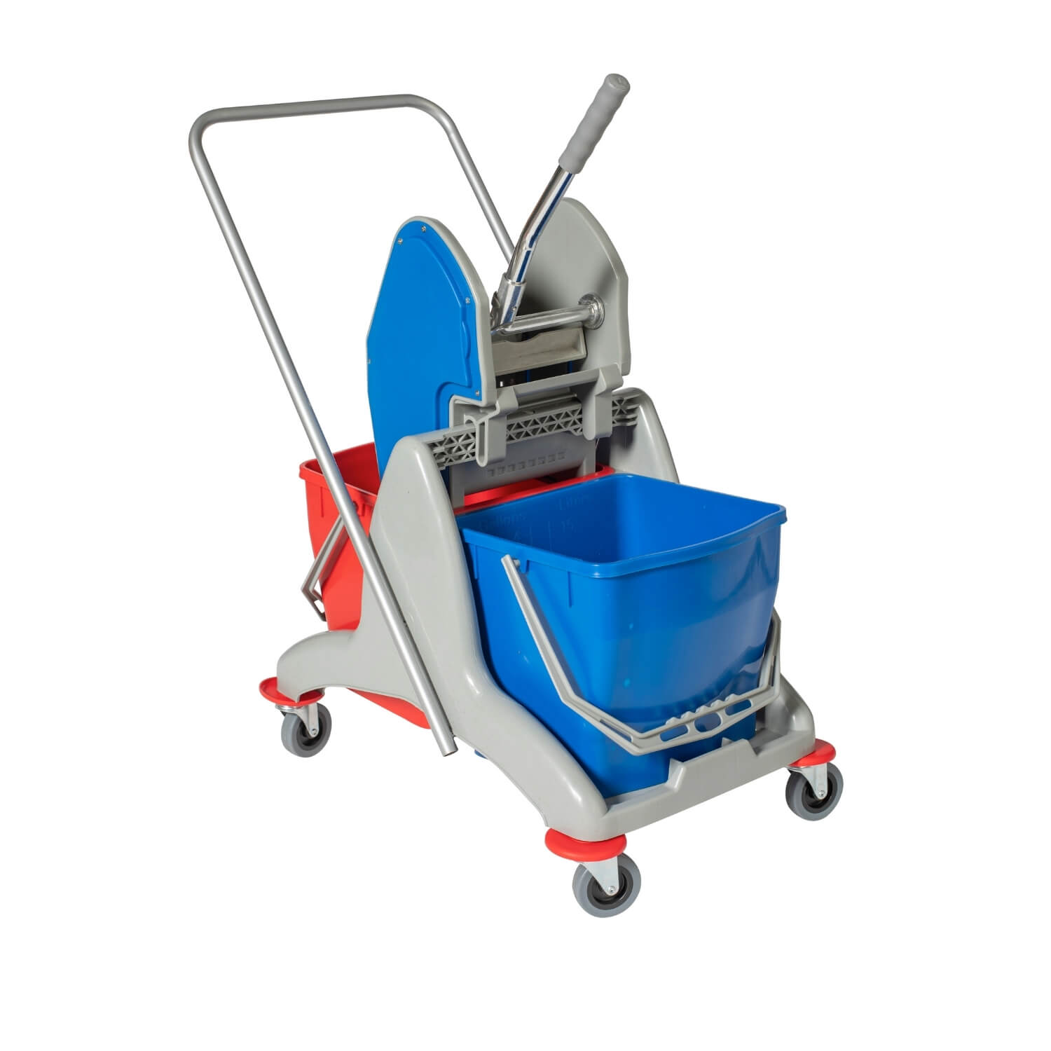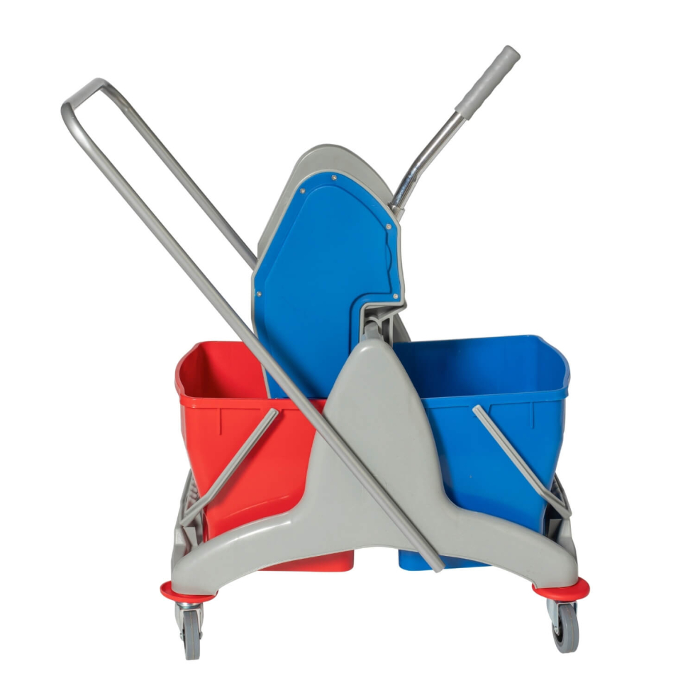 Reinigingswagen/rolwerkwagen met pers + 2 emmers (Blauw/rood)